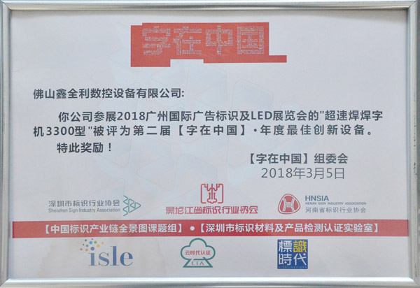 字在中國年度最佳創(chuàng)新設備…