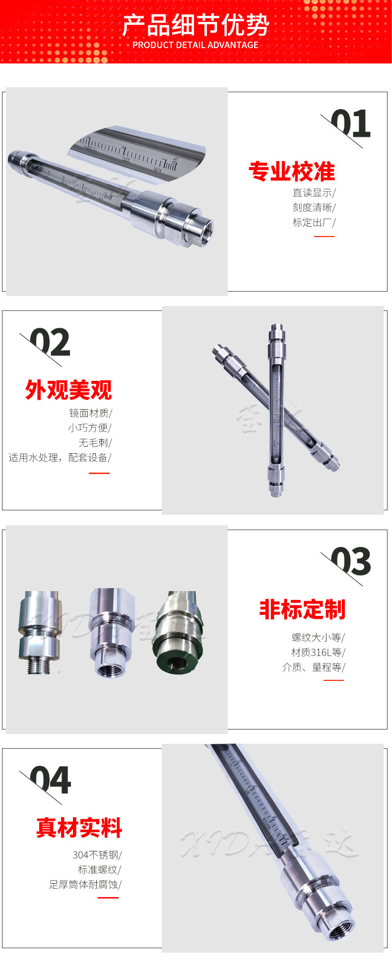 1.優(yōu)點:本款流量計光面外觀,刻度清晰,耐腐蝕,內(nèi)密封結(jié)構(gòu),標(biāo)定出廠,一件起售。