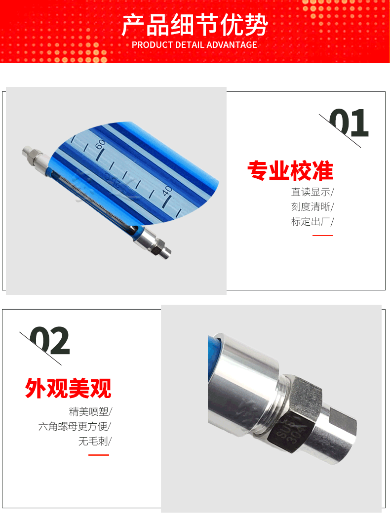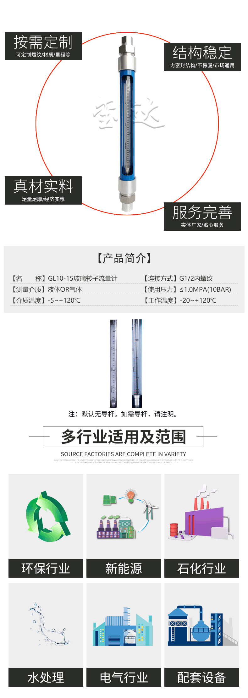 GL10-15螺紋連接玻璃轉(zhuǎn)子流量計特點: