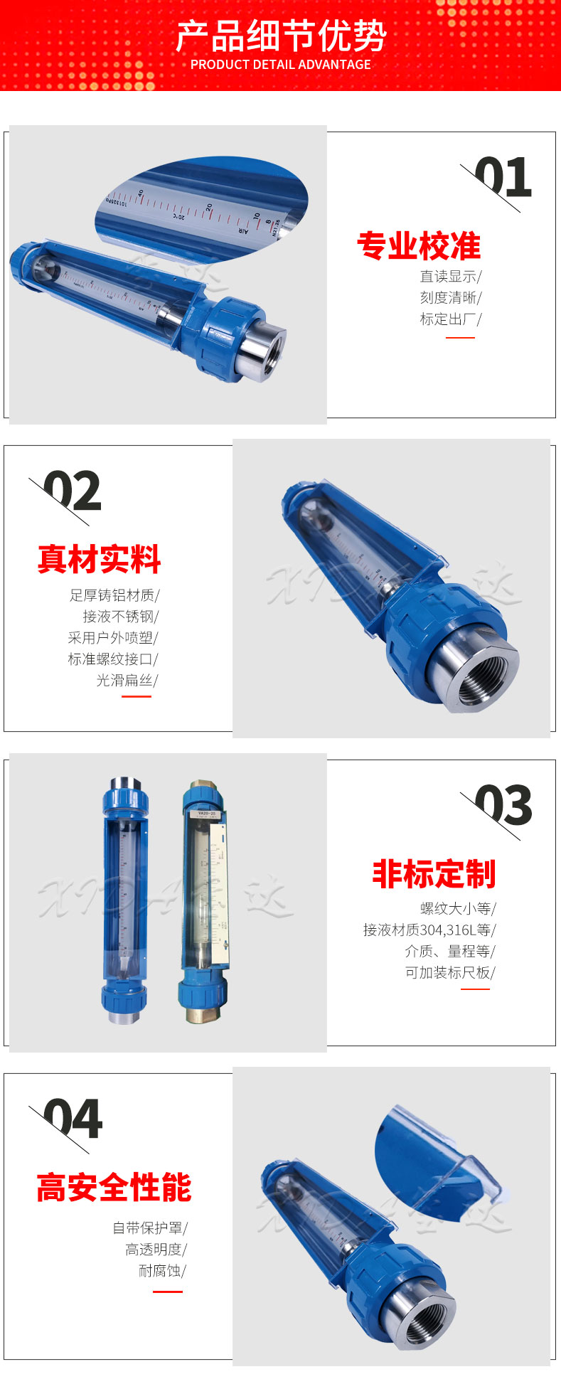 GL20-25F玻璃轉(zhuǎn)子流量計(jì)是采用優(yōu)質(zhì)戶外噴塑,不易磕碰。自帶的保護(hù)罩在使用時(shí)更加安全。接頭上的扁絲有利于安裝。璽達(dá)儀表生產(chǎn)的此款流量計(jì)安裝方便,更換也方便。璽達(dá)儀表致力于把控細(xì)節(jié),服務(wù)客戶。本公司作為生產(chǎn)廠家,擁有標(biāo)定設(shè)備和多種機(jī)械設(shè)備,支持非標(biāo)定制。