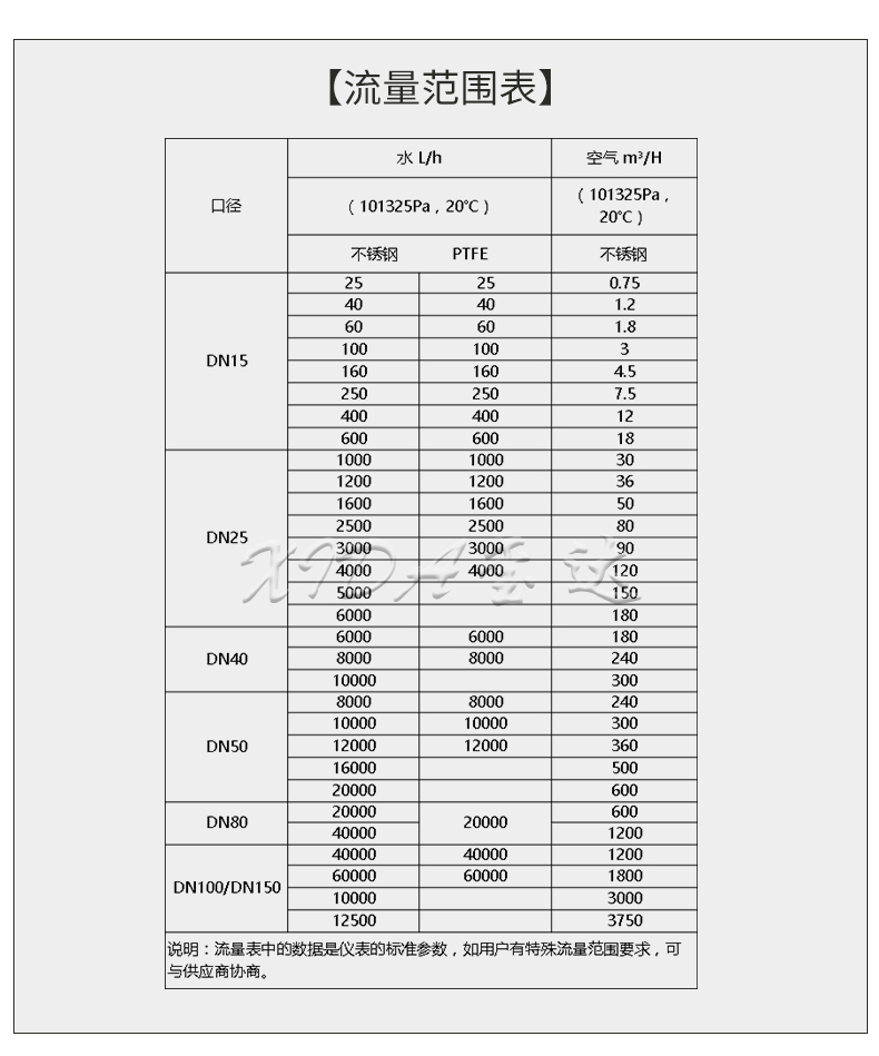 空氣:0.12~3750 m3/h(詳見流量范圍表)