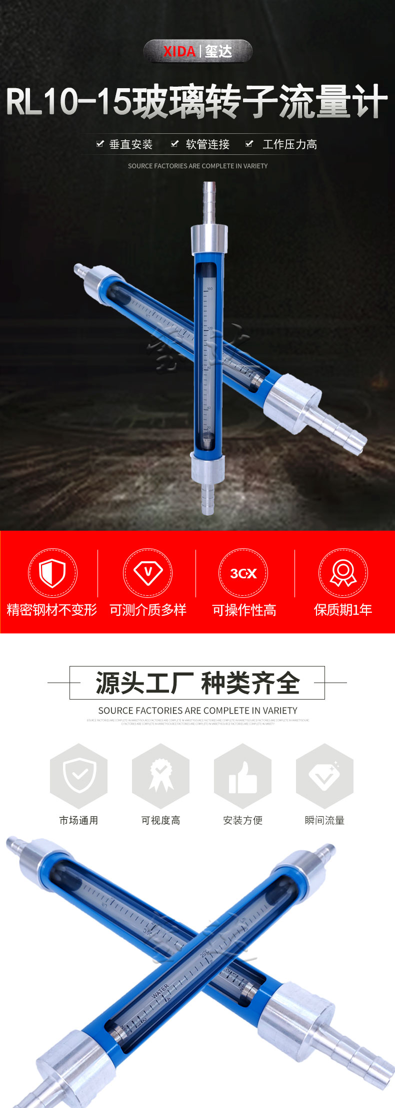 璽達儀表廠家直銷的RL10-15玻璃轉(zhuǎn)子流量計是采用寶塔軟管連接,安裝要求低的儀器儀表。