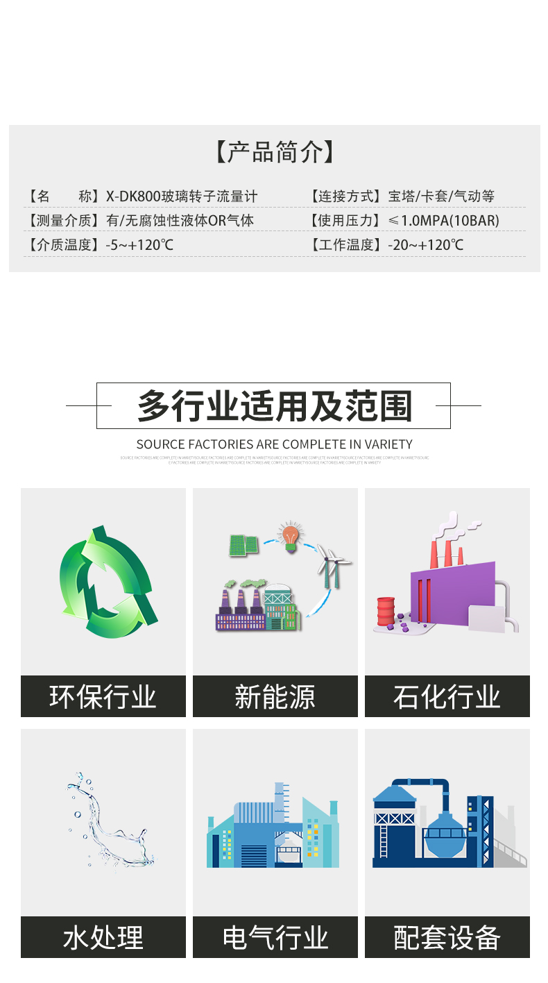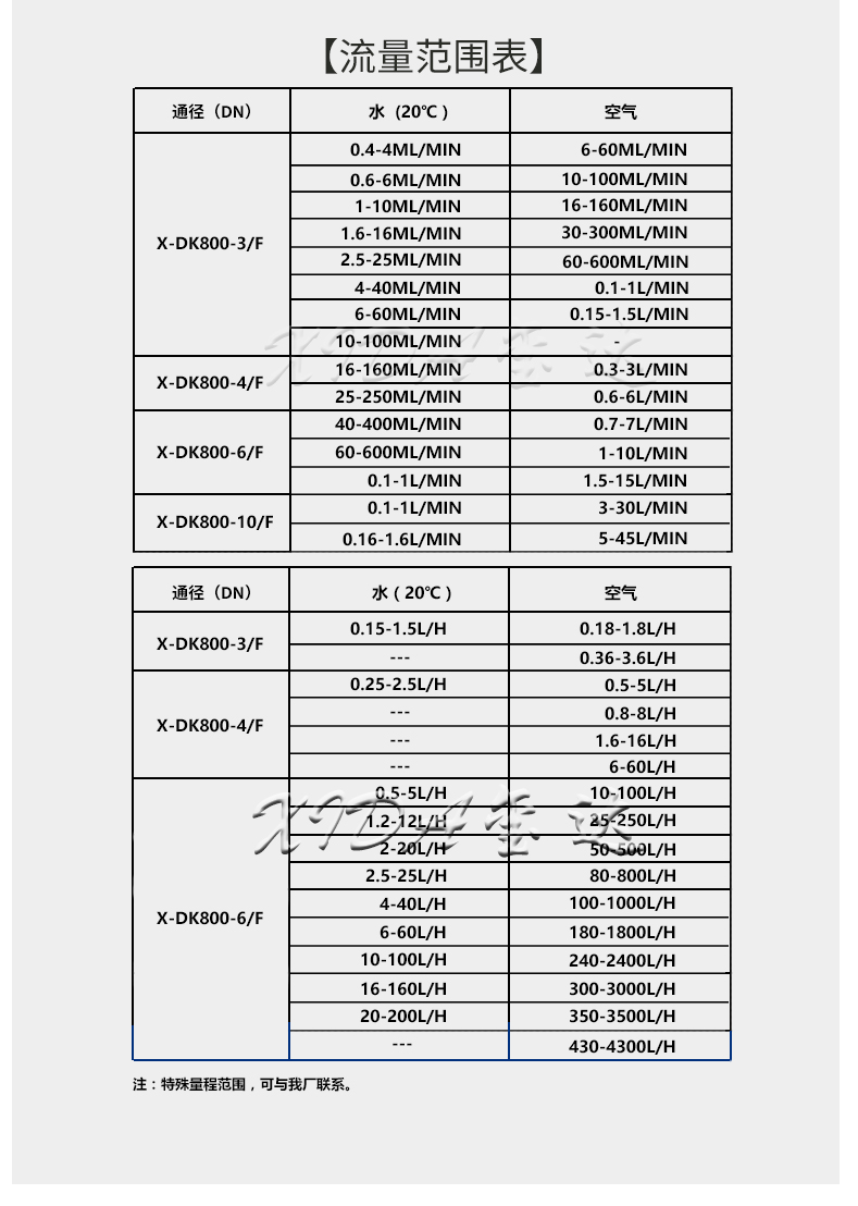 X-DK800玻璃轉(zhuǎn)子流量計(jì)主要作用于瞬間流量的測(cè)量??闪硗庵谱鞒擅姘迨?,報(bào)警型,法蘭連接型等。是一款可以測(cè)量腐蝕性氣體或酸堿性液體微小流量計(jì)。1.優(yōu)勢(shì):外形采用整體304材質(zhì)。測(cè)量微小流量。小巧美觀。連接方式多樣。2.性能:工作壓力≤1.0MPa,比同類型同規(guī)格流量計(jì)高。拆裝方… [了解更多]
