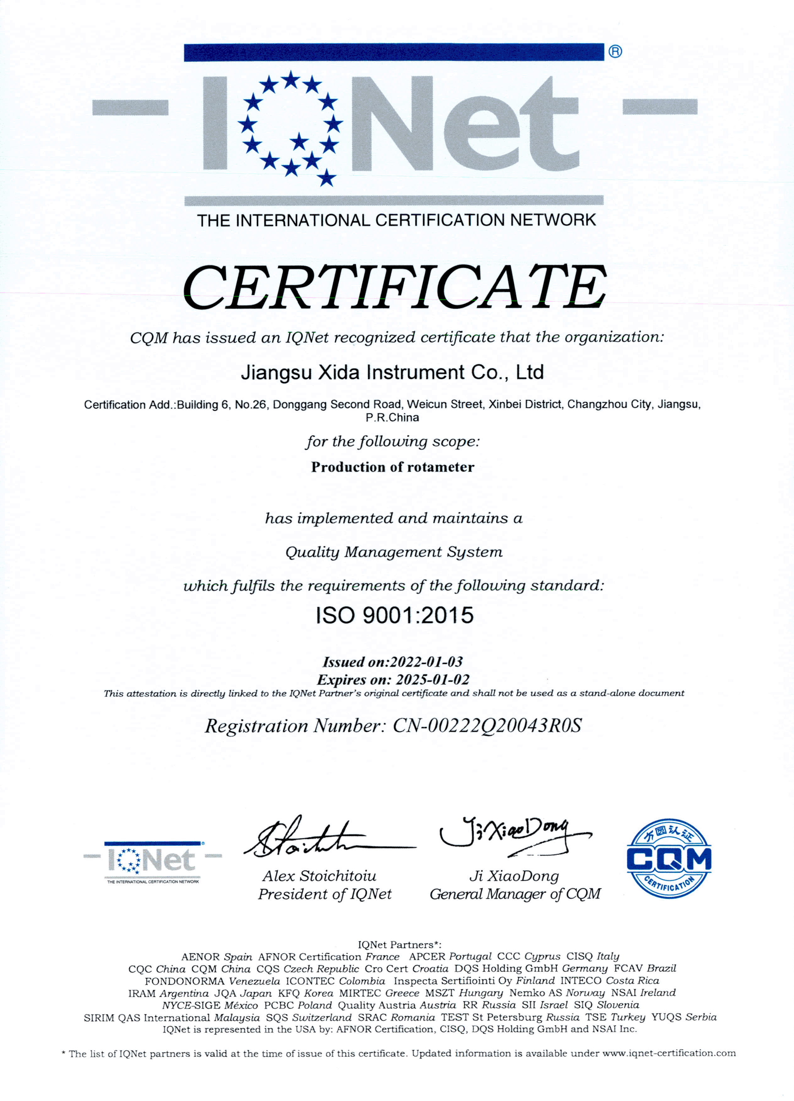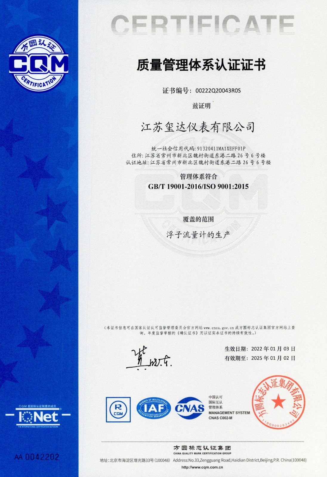 璽達(dá)儀表ISO9001:2015證書(shū)